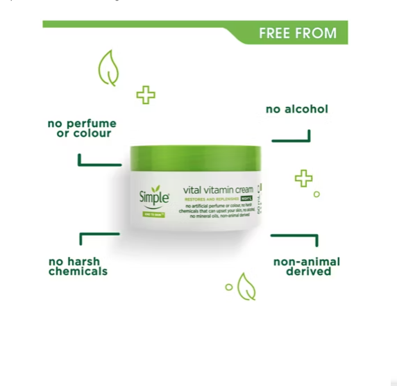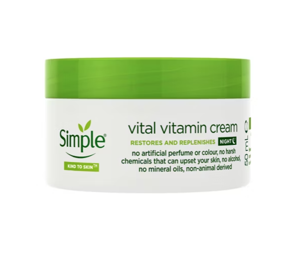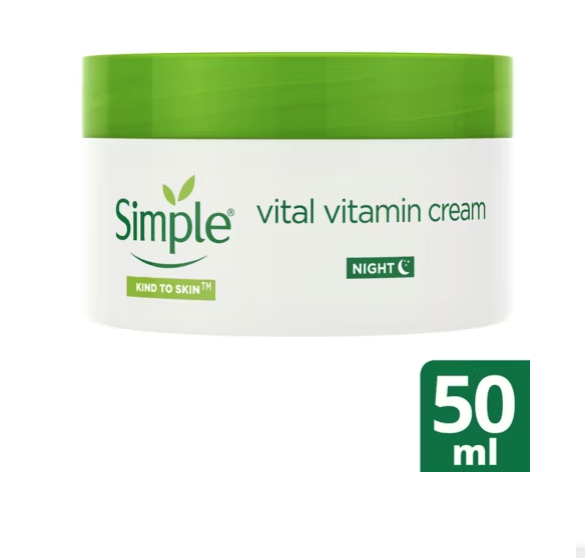 - Simple Kind to Skin Vital Vitamin Night Cream restores and replenishes your skin throughout the night